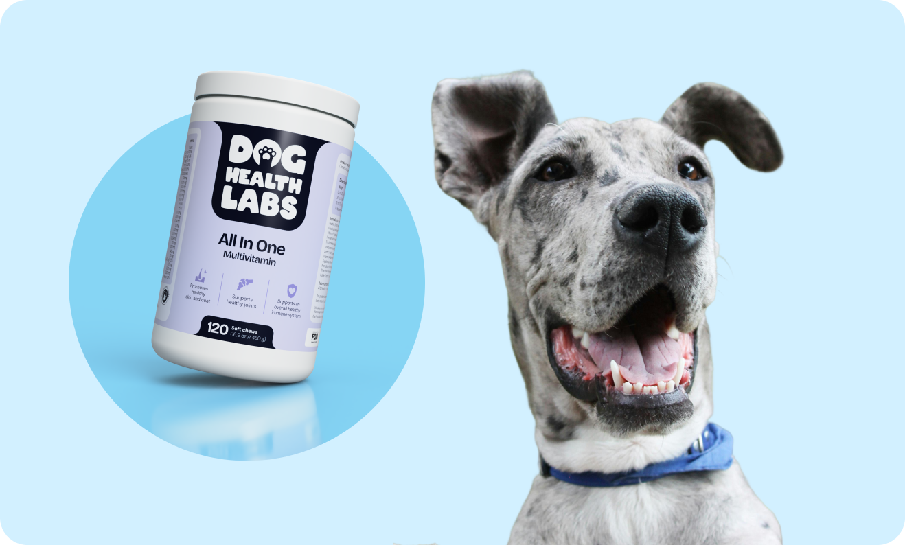 Our All-In-One Multivitamin Soft Chews provide comprehensive support for your dog’s joints, coat, skin, and immune system, all in one tasty, easy-to-give chew. They're vet-recommended and made with high-quality ingredients right here in the USA.